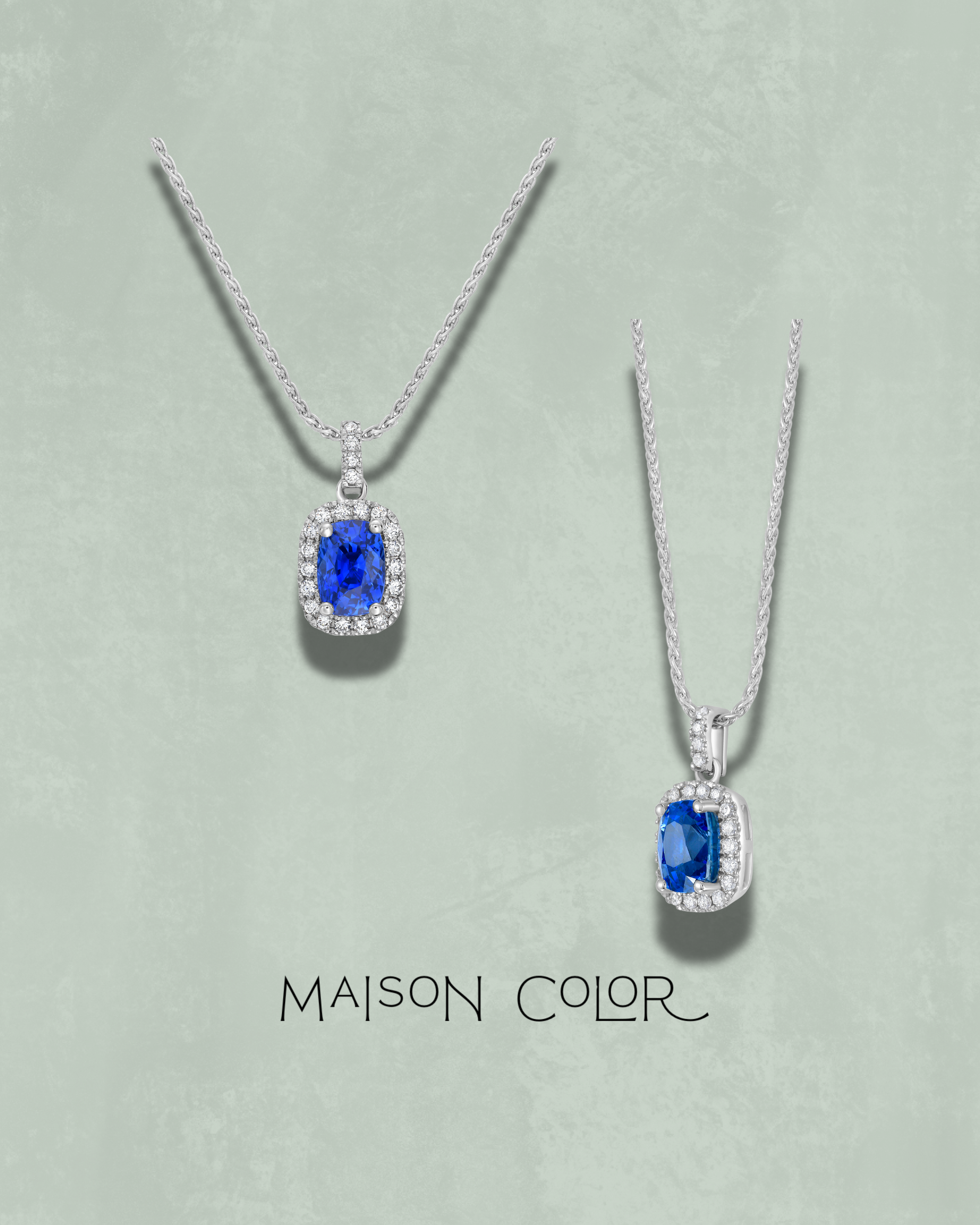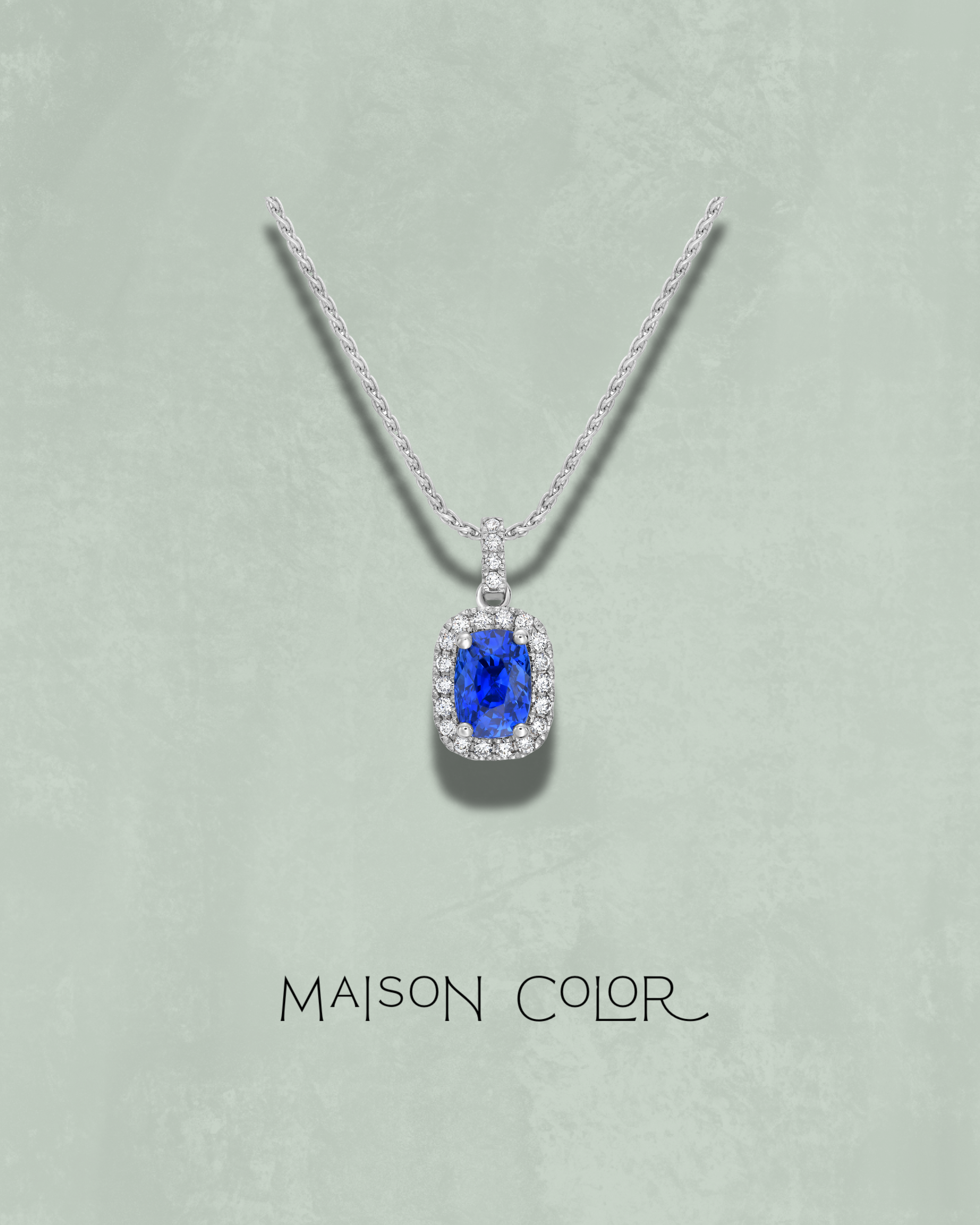 Elegant and enduring, this pendant showcases a no-heat blue sapphire of exceptional clarity and depth, celebrated for its natural, untreated beauty. The sapphire is set in a natural white diamond halo, enhancing the rich blue hue. Suspended from a delicate 18k white gold chain, this piece offers a timeless silhouette with a quiet sophistication—perfect for everyday wear or as a meaningful heirloom.
