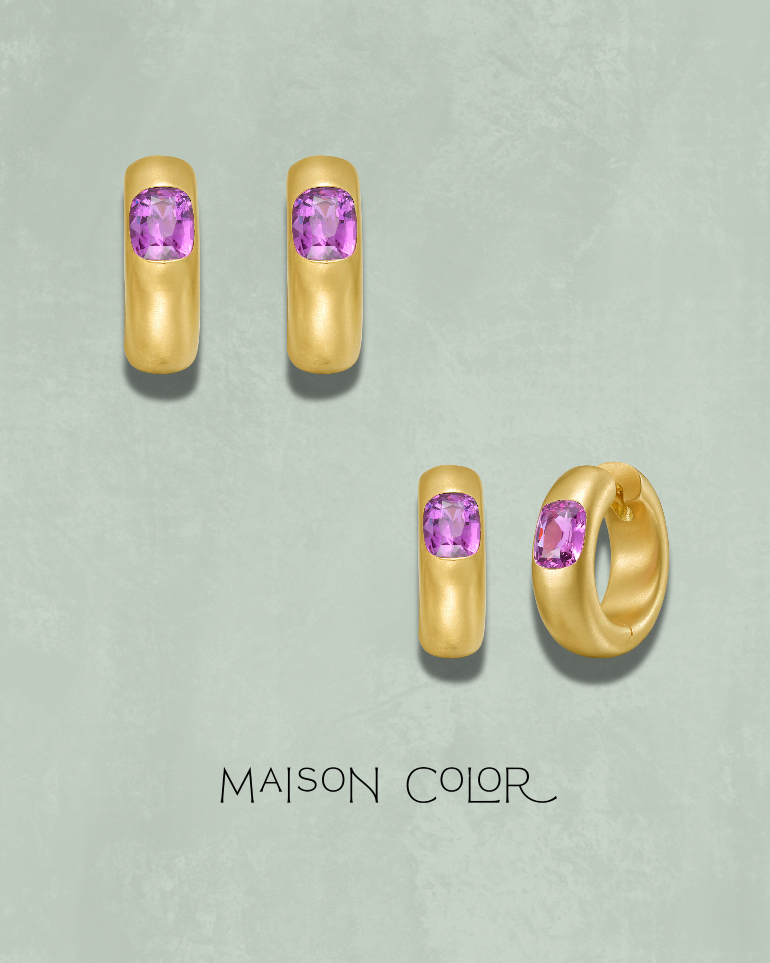 These substantial hoops are sculpted in rich 18k yellow gold and finished with a soft satin texture that lends a modern, understated glow. Natural, unheated certified pink sapphires are flush set into the design, their rare color bringing a vibrant contrast to the warm gold. A blend of volume and elegance, these hoops are made for those who appreciate jewelry with both substance and rarity.
