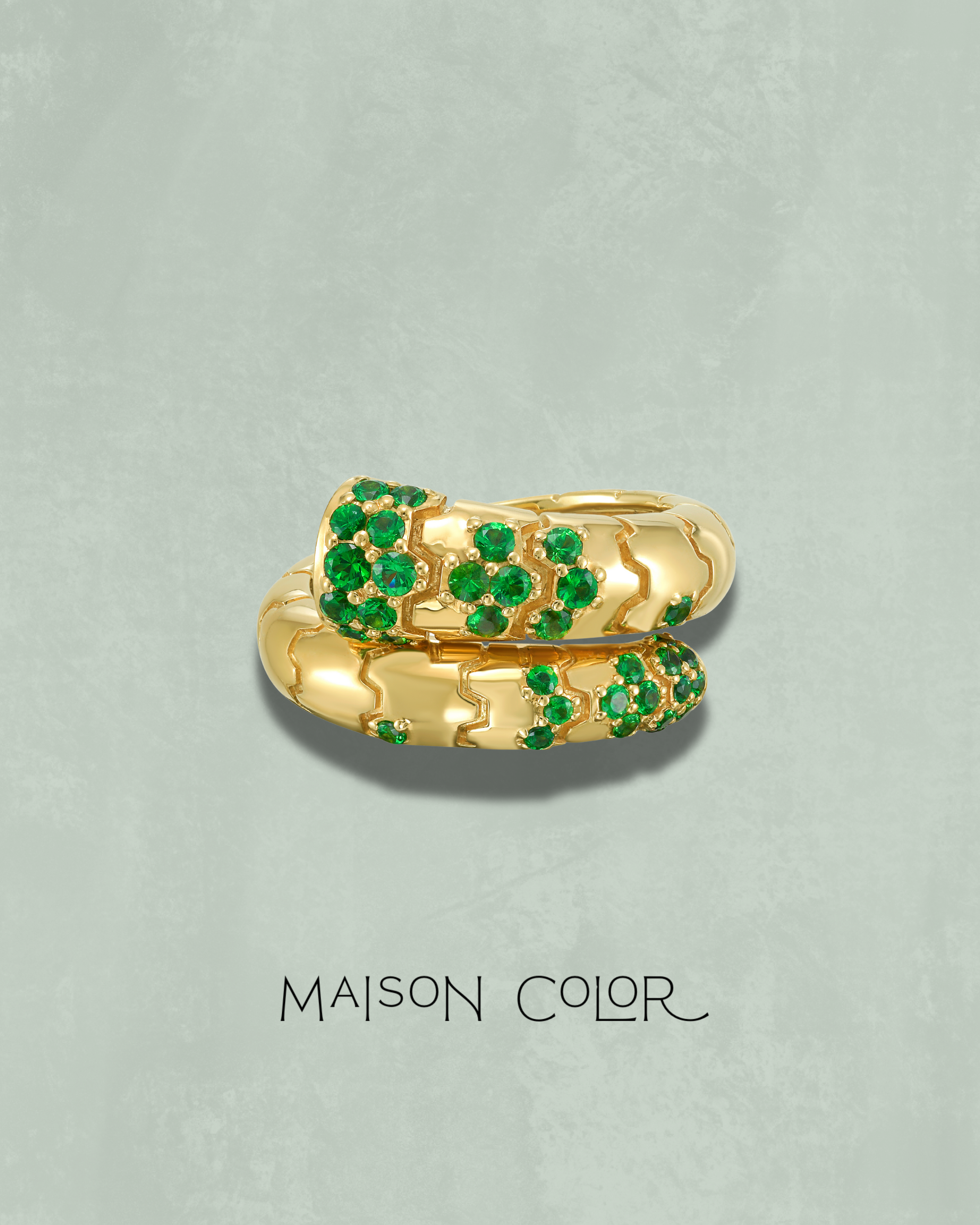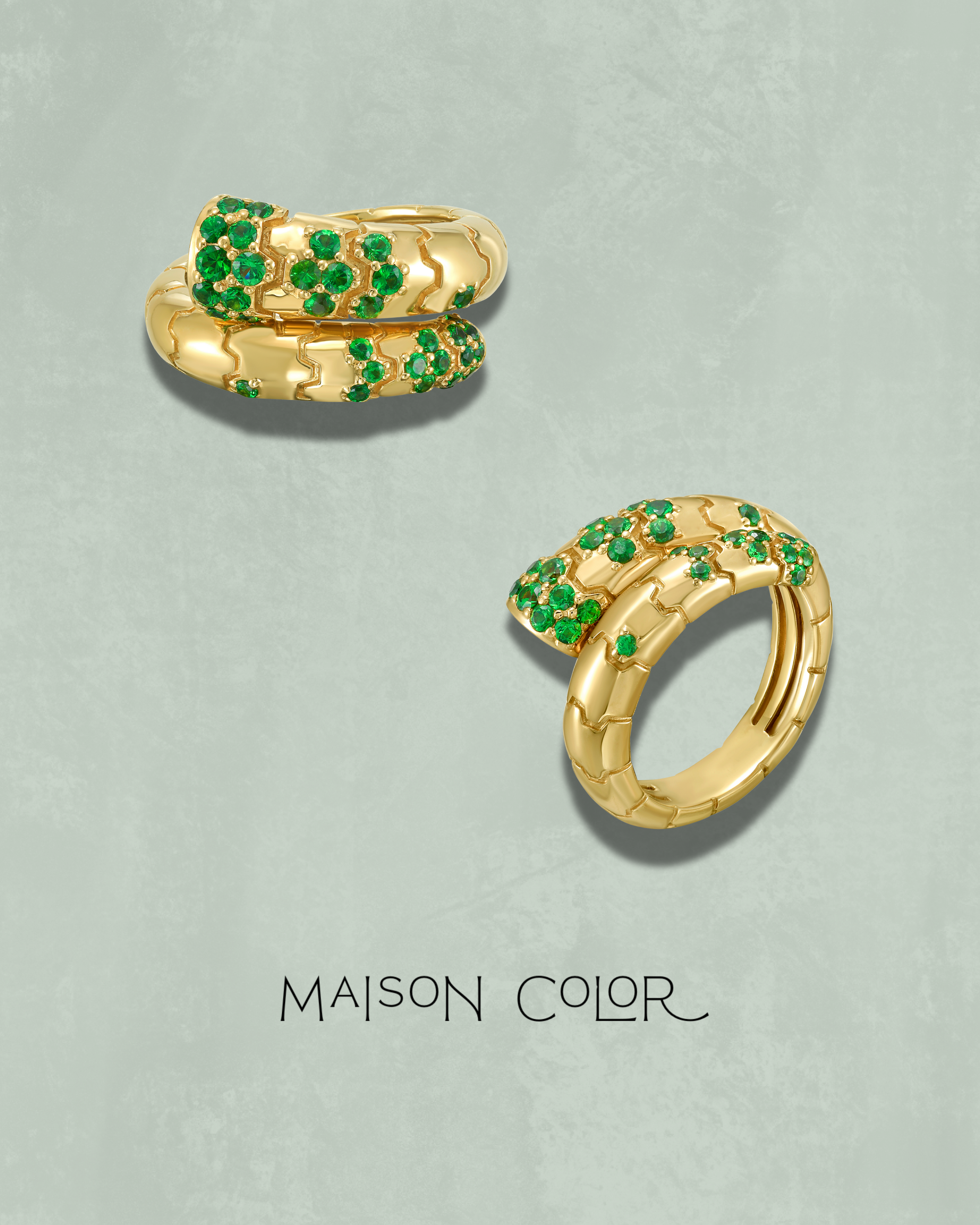 Inspired by the Greek word for serpent, the Ophis (OH-fis) ring comes to life in 18k yellow gold, adorned with vibrant tsavorites that trace its sinuous form. Evoking the graceful movement of a serpent, this ring balances boldness and elegance, celebrating transformation and natural beauty with every curve.