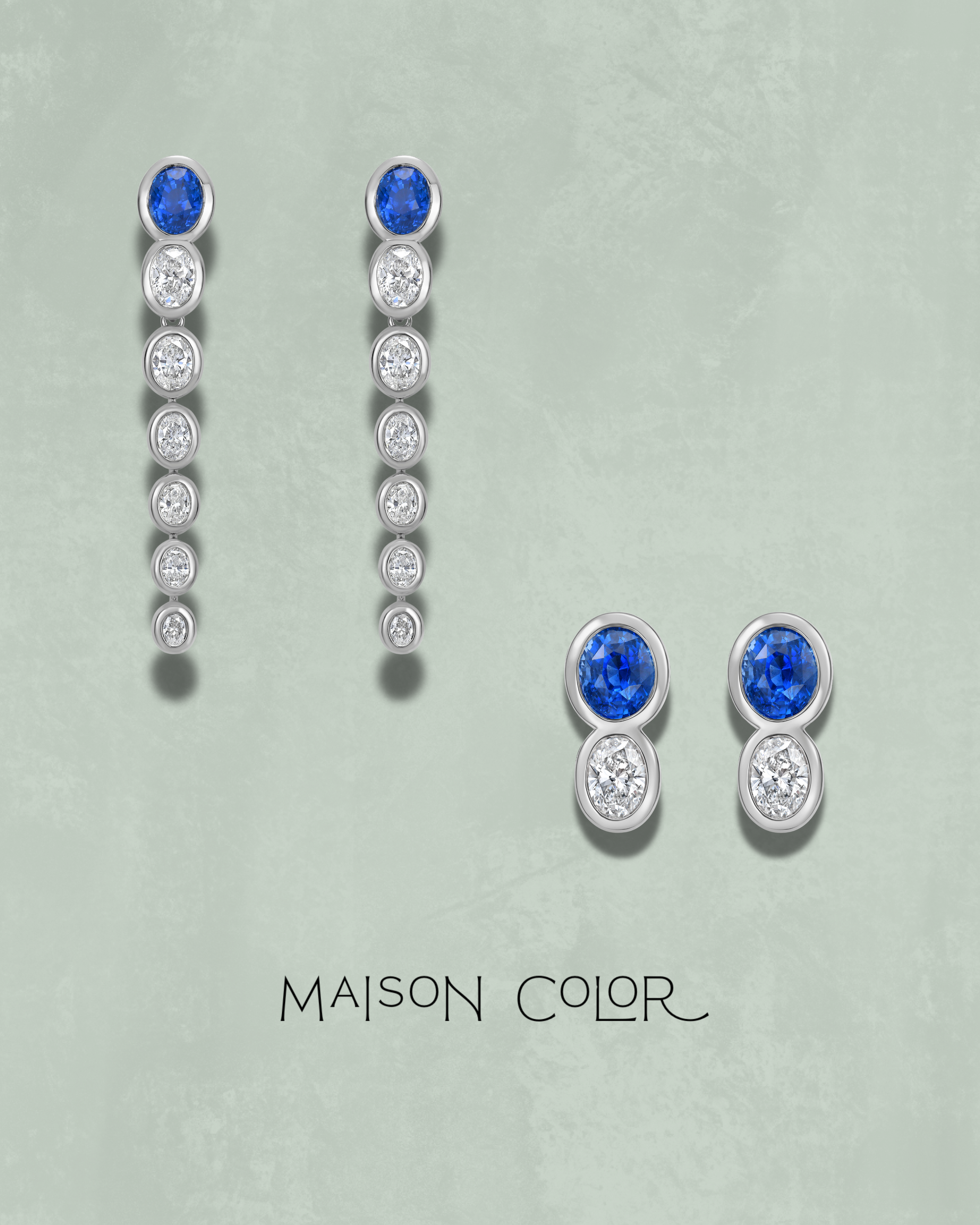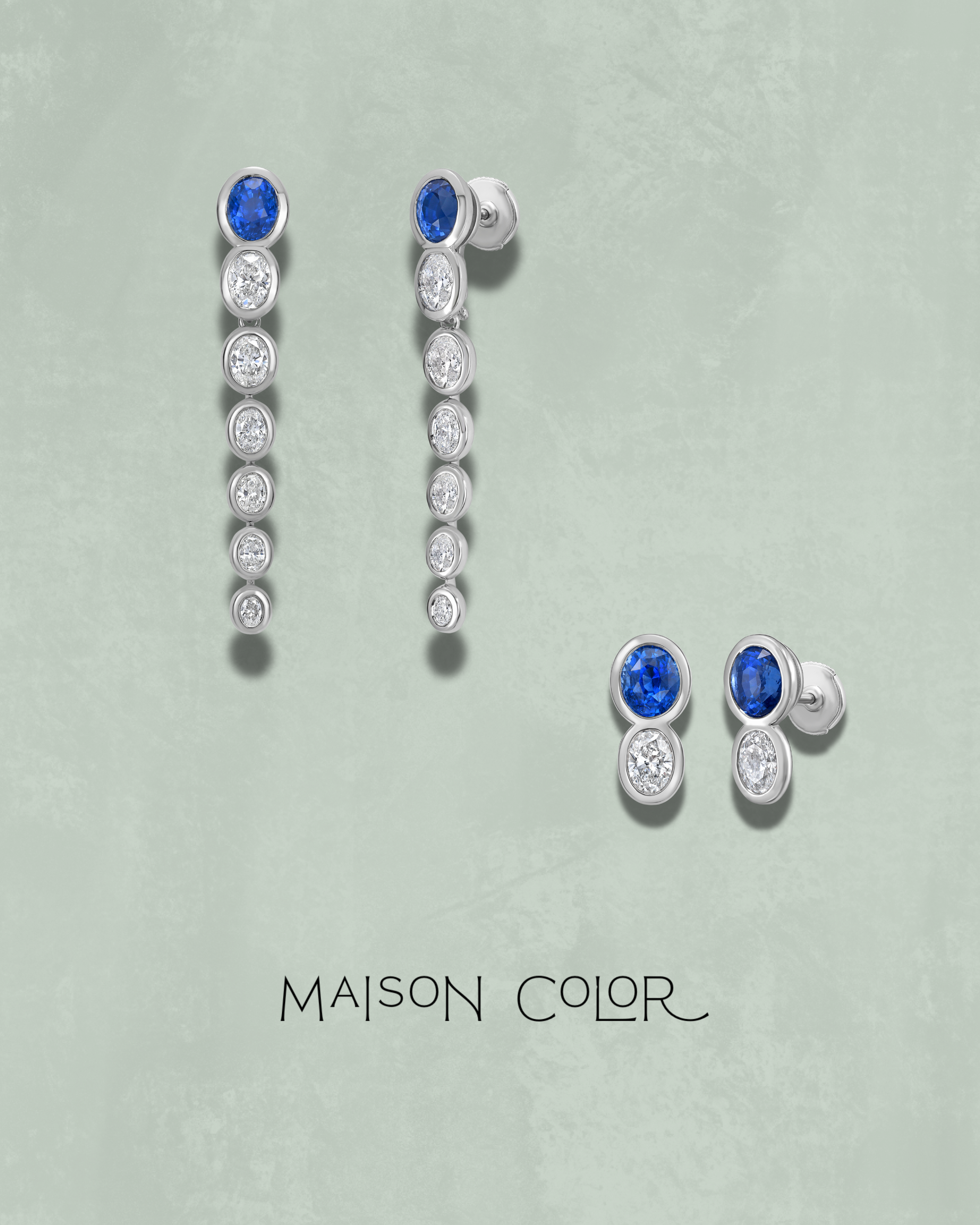These versatile earrings feature a stunning oval blue sapphire set above six rows of graduated white diamonds, creating a cascading effect that radiates elegance and light. Crafted to allow the diamond drops to detach, they can be worn as a dramatic drop or as a refined sapphire-and-diamond stud, offering two exquisite looks in one. Designed in platinum to maximize brilliance, these earrings are a perfect balance of versatility and timeless sophistication.