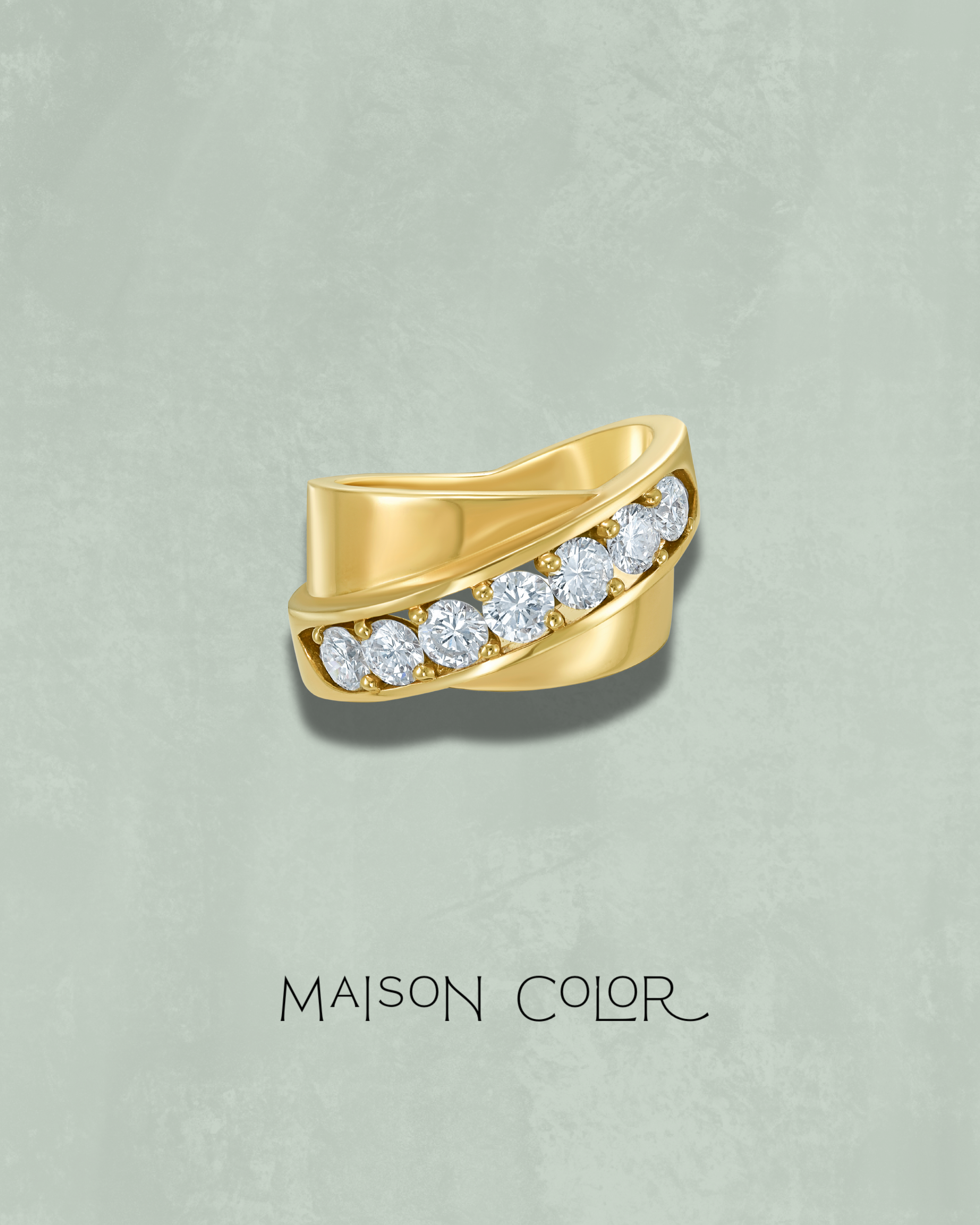 From the Bold Collection, this Curve ring in 18K yellow gold features seven round brilliant white diamonds totaling 1.35 carats. Its gently flowing silhouette follows the natural line of the finger, creating a harmonious, elegant look. Designed for effortless everyday wear, it’s a striking yet refined statement piece that balances bold presence with timeless sophistication.