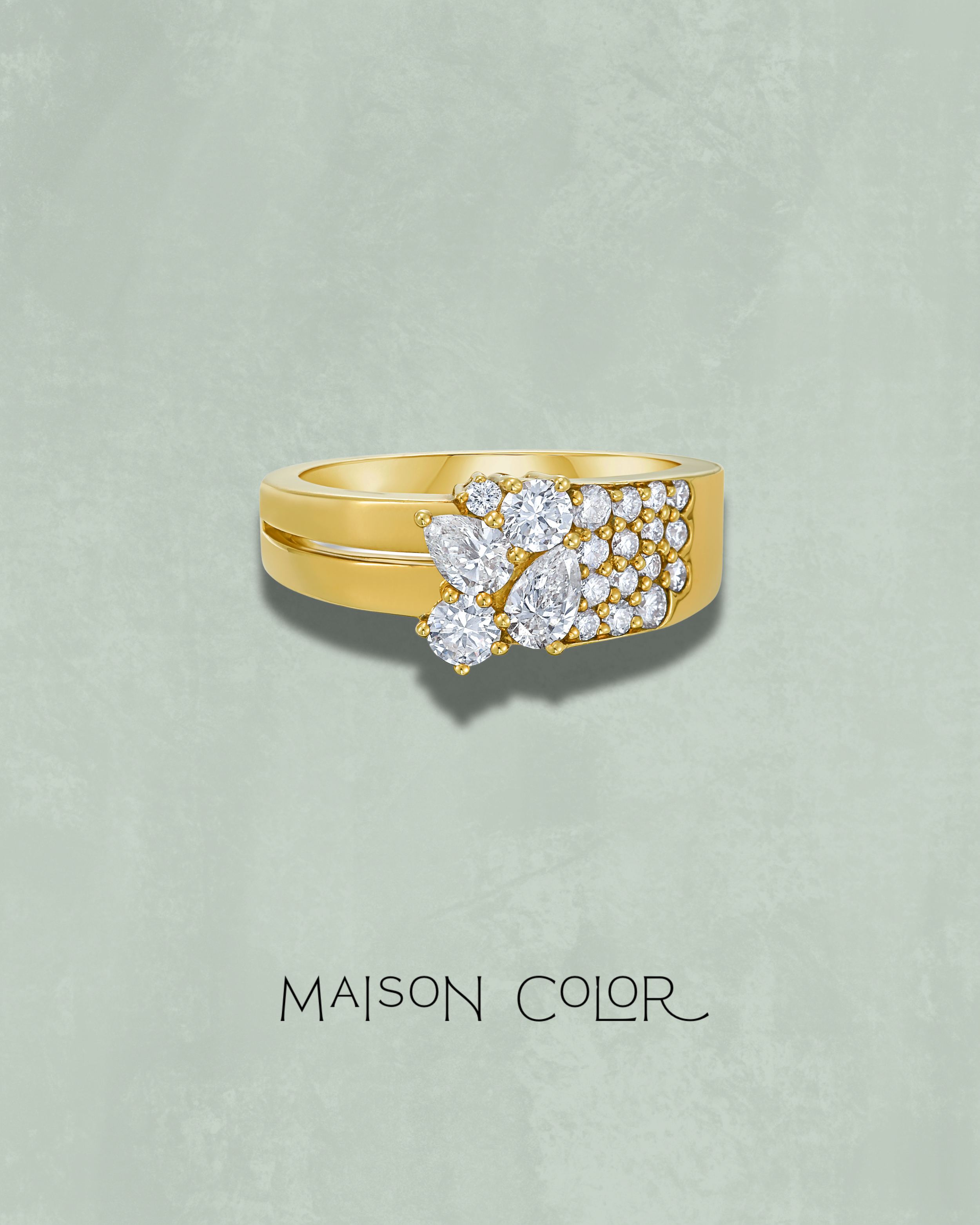 From the Bold Collection, this 18K yellow gold ring captures the essence of refined strength. Set with 18 round brilliant diamonds totaling 0.53 carats and accented by two pear-shaped white diamonds weighing 0.37 carats, it balances fluid curves with crisp geometry. Designed for effortless wear, its luminous form adds a touch of everyday elegance — bold in presence, timeless in style.