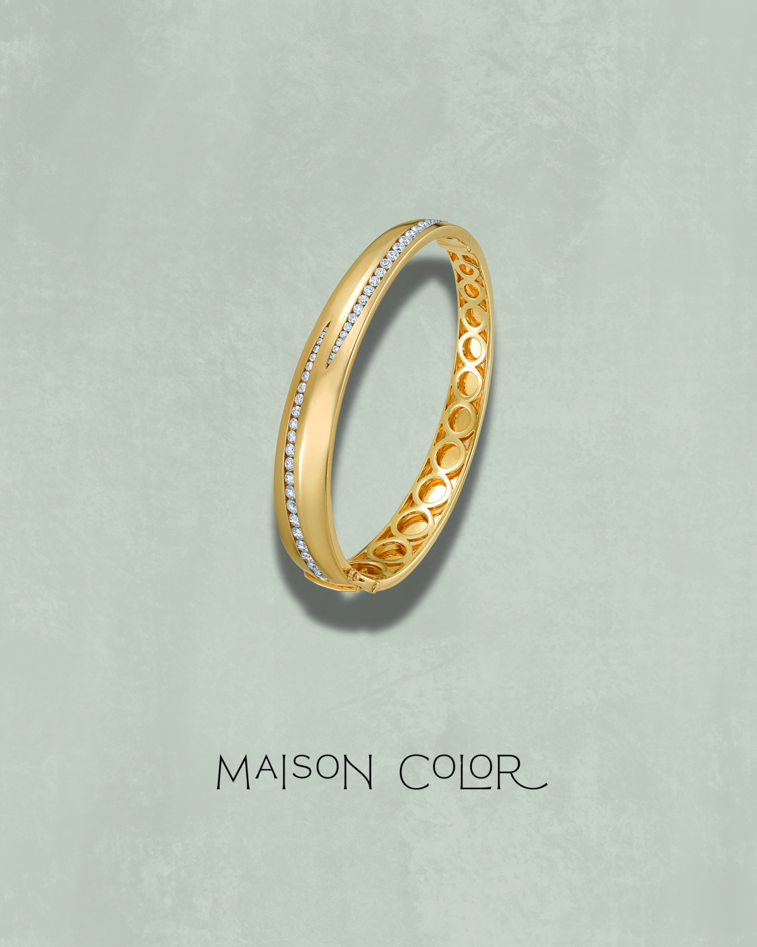 A modern classic reimagined — this Bold Collection bangle is crafted in 18K yellow gold and set with 1.44 carats of round brilliant white diamonds. Its sleek, graduated silhouette embodies effortless sophistication, designed for everyday wear with a statement-making edge. Understated yet striking, it’s the kind of piece that elevates everything it touches — whether worn solo or stacked in true Maison Color fashion.