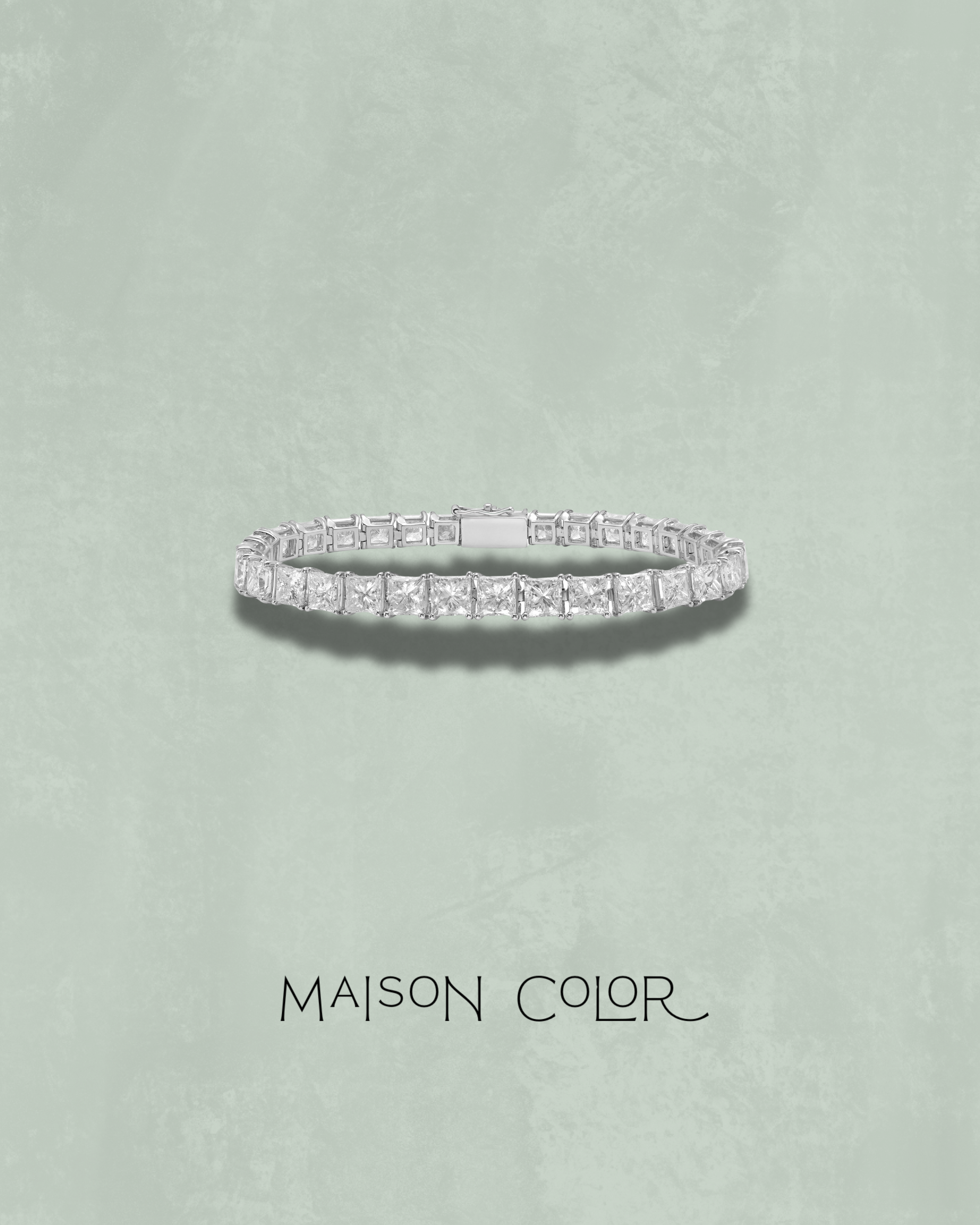 A modern interpretation of a timeless classic. This bracelet features a seamless line of perfectly matched princess-cut white diamonds, each expertly set to capture light from every angle. Handcrafted in 18k gold, its clean geometry and refined brilliance create an understated statement — elegance in its princess like form.