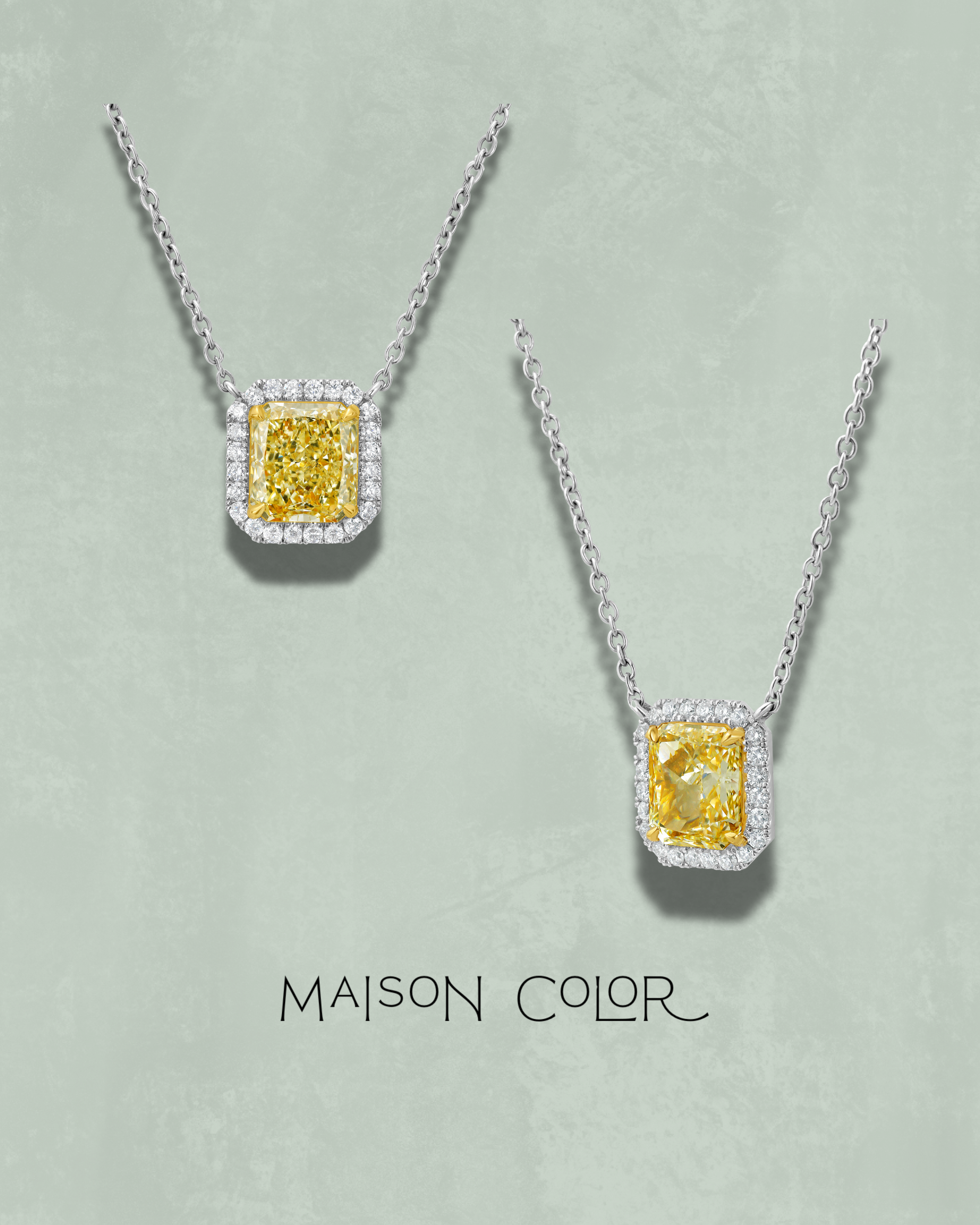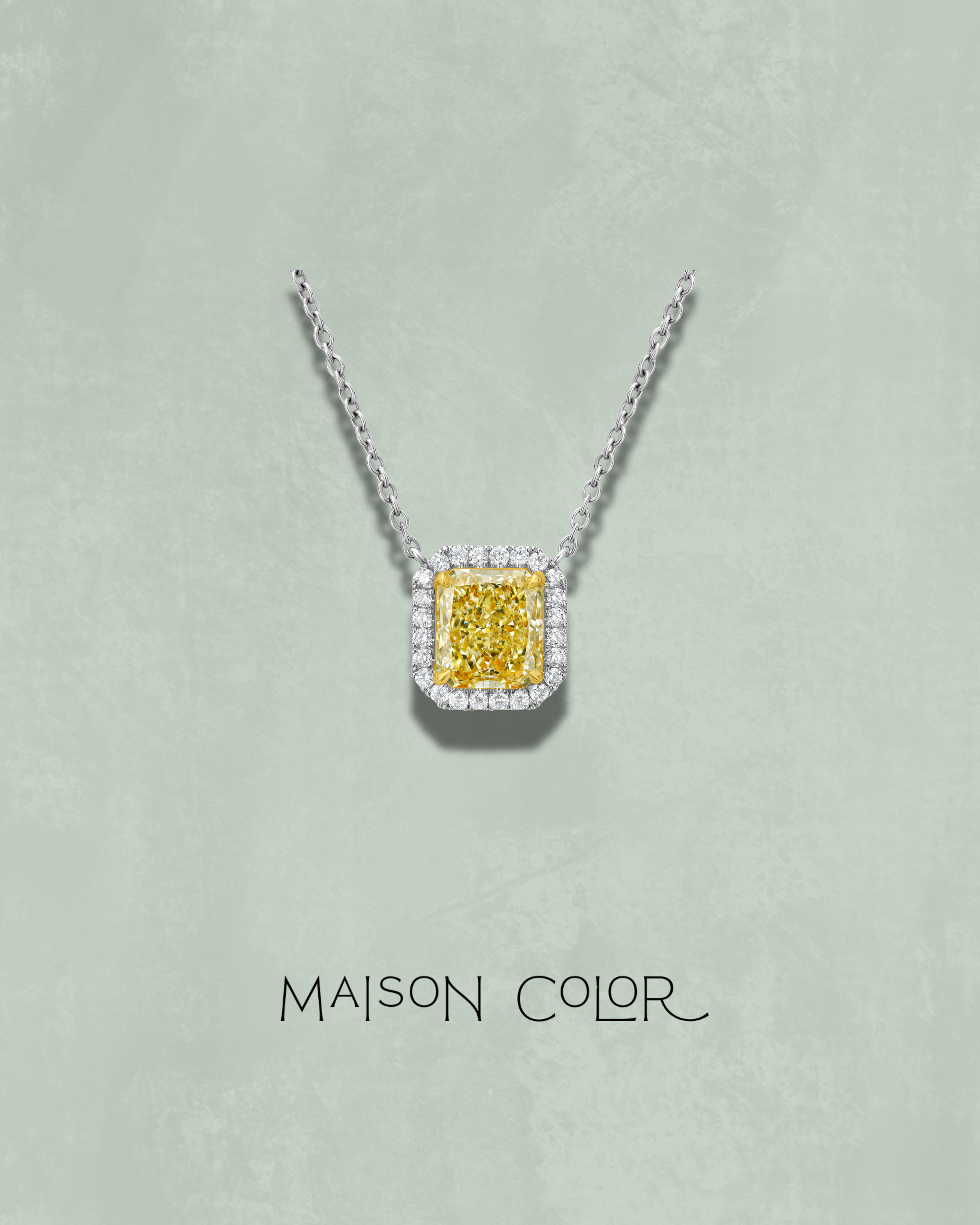 This pendant necklace features a natural cape-colored diamond, known for its warm, champagne-toned glow and soft radiance. Set at the center of a crisp white diamond halo, the subtle warmth of the center stone is beautifully contrasted and enhanced. Suspended from a fine chain and crafted in platinum, this piece offers timeless elegance with an understated, heirloom-inspired charm.
