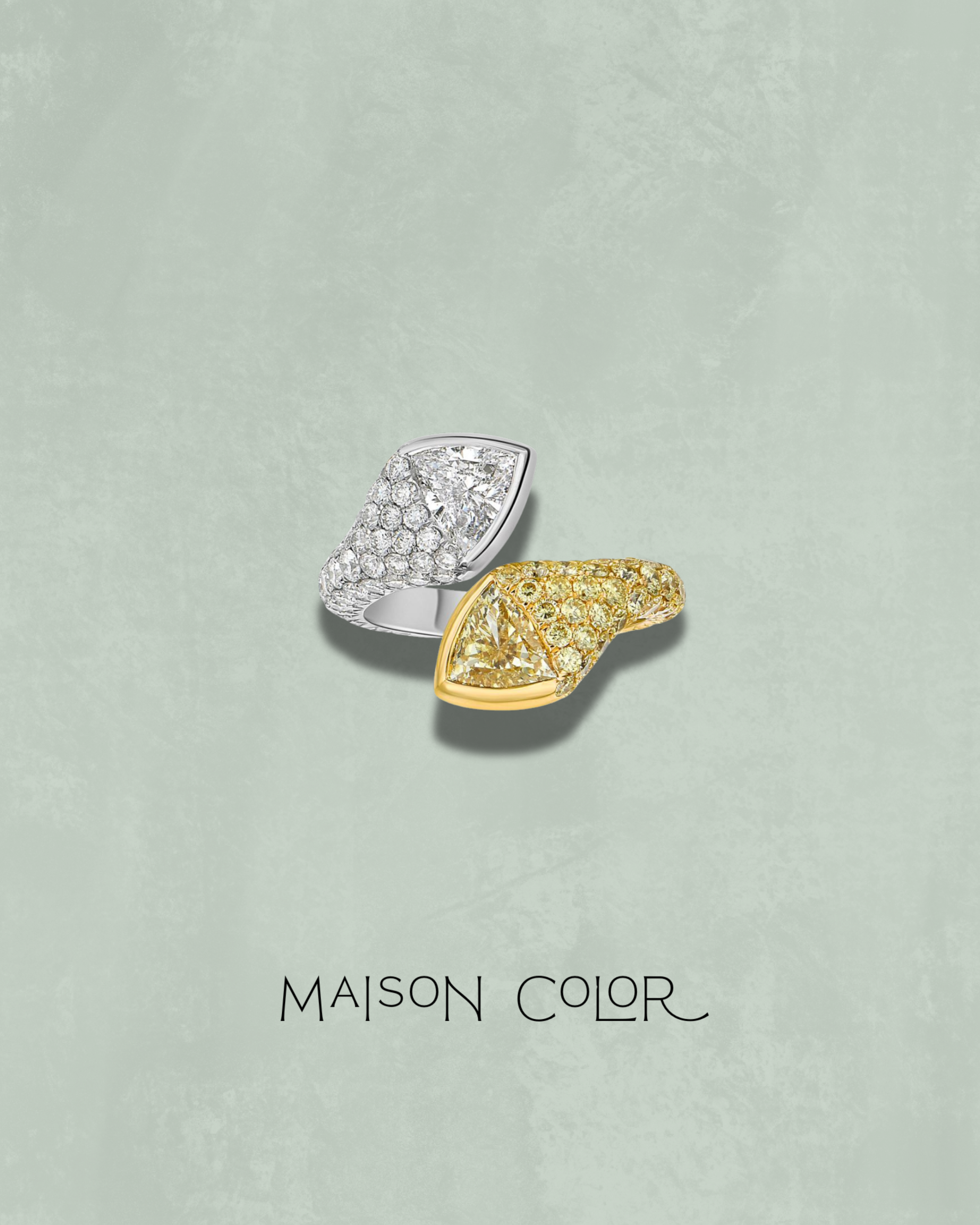 A study in contrast and harmony. This Toi et Moi ring brings together two exquisite stones: a soft, glowing fancy light yellow diamond and a crisp, colorless E diamond—each set at a gentle angle, with the remaining metal covered in pave. Crafted in a mix of platinum and 18k yellow gold, the design highlights the individuality of each gem while uniting them in a single, fluid gesture. Romantic yet refined, this ring speaks in quiet dualities—light and shadow, warmth and clarity, you and me.